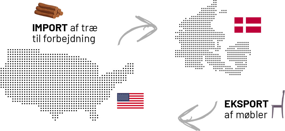 Med en bevilling til aktiv forædling kan den danske møbelproducent trygt importere det amerikanske træ og omdanne det til møbler. Efterfølgende kan det reeksporteres til USA – fuldkommen told- og momsfrit. Det kan derfor stadigvæk blive en god forretning for den danske virksomhed. De får nemlig lov til at importere- og eksportere varer toldfrit.